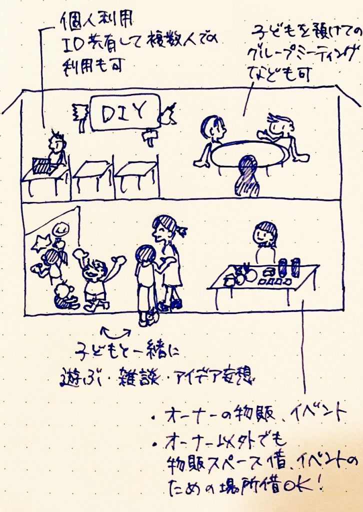 フリーランスがゆるくつながれる場を作りたい。家賃を分担して、家を借り、イベント開催や販売(グッズやお菓子 etc)を行う。 コワーキングスペースや、保育ができる スペースもあれば、多くの人が働きやすくなるのでは?
