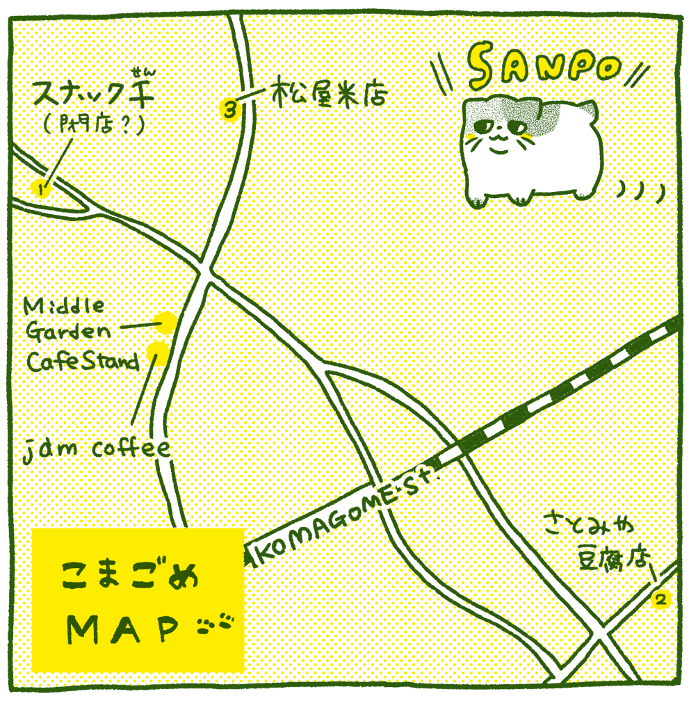 いつもお米を買う「松屋米店(③)」。ガラスの引き戸を開けて中に入ると、お米の香りがふわっと漂う。大きな精米機がわしゃわしゃ動いているときは、自然と話しかける声も大きくなる。店の奥の座敷には、おじちゃん、おばちゃんがまったりしているのが見える。鉄製の重り玉を乗せた秤も懐かしい。