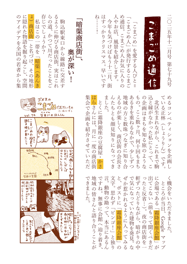 「こまごめ」を愛する人びと=「こまごめ人」が発行するこまごめ通信。こまごめ人お気に入りの人やお店、風景を紹介します。
